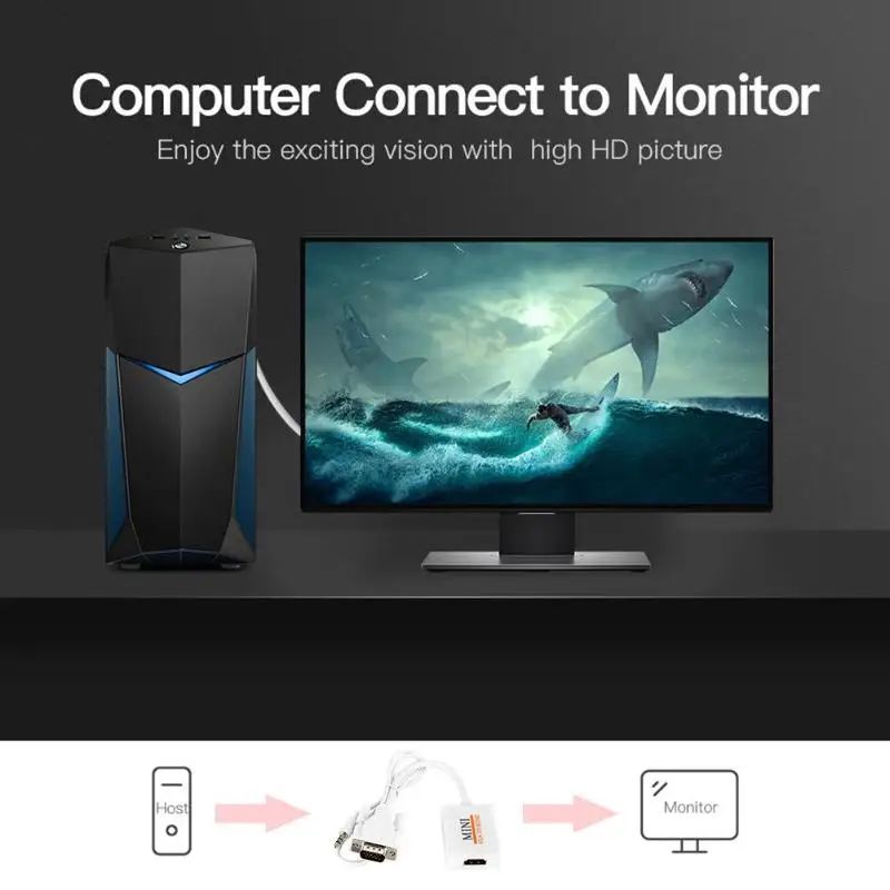 Предложение Описание для ALLOYSEED VGA Мужской к HDMI Женский адаптер HDMI выход 1080 P HD видео и аудио адаптер кабель для ТВ HD ТВ ПК монитор для ноутбука